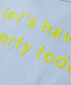 Dit kindershirt heeft korte mouwen, een ronde halslijn en een recht model. Op dit kindershirt staat de tekst ‘let’s have a party today’ afgebeeld. Het kindershirt met korte mouwen is gemaakt van 95% katoen en 5% elastaan, waardoor hij comfortabel en ademend is.