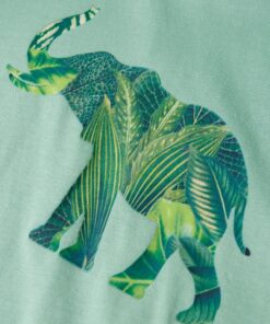 Dit kindershirt heeft korte mouwen, een ronde halslijn en een recht model. Op dit kindershirt staat een olifant afgebeeld die van bladeren is gemaakt. Het T-shirt is gemaakt van 100% katoen, waardoor het zacht en comfortabel aanvoelt.