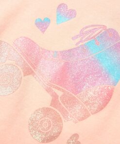 Dit kindershirt heeft korte mouwen, een ronde halslijn en een recht model. Dit shirt heeft een glinsterende rolschaats op de borst. Het kindershirt met korte mouwen is gemaakt van 95% katoen en 5% elastaan, waardoor het comfortabel en ademend is.