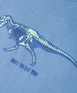 Dit kindershirt heeft korte mouwen, een ronde halslijn en een recht model. Dit kindershirt heeft een verhoogde rubberprint van een grote dinosaurus. Het kindershirt met korte mouwen is gemaakt van 100% katoen, waardoor het zacht en comfortabel aanvoelt.