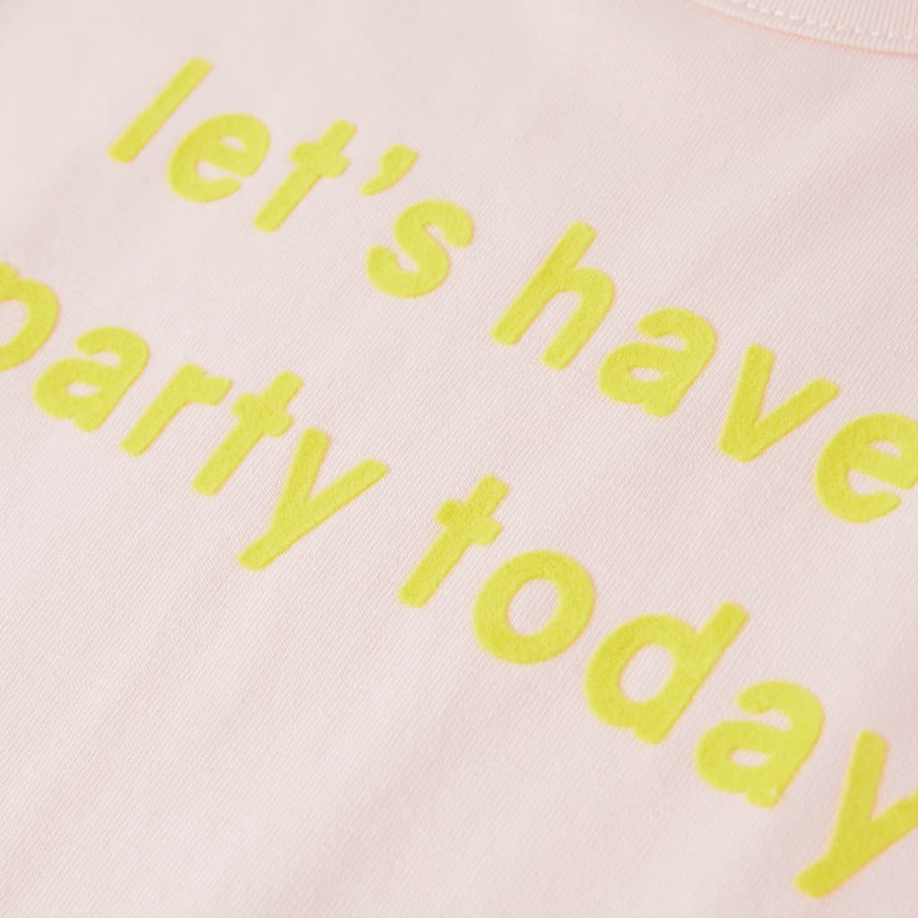 Dit kindershirt heeft korte mouwen, een ronde halslijn en een recht model. Op dit kindershirt staat de tekst ‘let’s have a party today’ afgebeeld. Het kindershirt met korte mouwen is gemaakt van 95% katoen en 5% elastaan, waardoor hij comfortabel en ademend is.