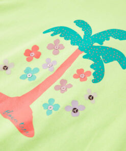 Dit kindershirt heeft korte mouwen, een ronde halslijn en een recht model. Op dit kindershirt staat een boom met bloemen afgebeeld. Het kindershirt met korte mouwen is gemaakt van 57% katoen, 38% polyester en 5% elastaan, waardoor het zacht en comfortabel aanvoelt.