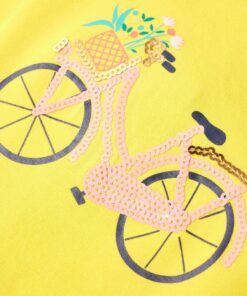 Dit kindershirt heeft korte mouwen, een ronde halslijn en een recht model. Op dit T-shirt staat een fiets op de borst afgebeeld, waardoor hij nog leuker en mooier is. Het kindershirt met korte mouwen is gemaakt van 95% katoen en 5% elastaan, waardoor het comfortabel en ademend is.