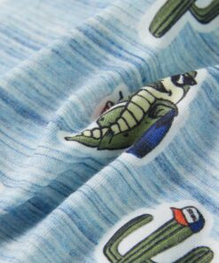 Dit kindershirt heeft korte mouwen, een ronde halslijn en een recht model. Dit kindershirt heeft een patroon van cartoonkrokodillen, cactussen en frietjes. Het kindershirt met korte mouwen is gemaakt van 100% gekamd katoen dat met een silicone- en enzymwassing is behandeld, zodat het zacht en comfortabel aanvoelt.
