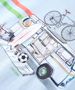 Dit kindershirt heeft korte mouwen, een ronde halslijn en een recht model. Op dit kindershirt staan een campingbusje en andere patronen afgebeeld. Het T-shirt is gemaakt van 100% katoen, waardoor het zacht en comfortabel aanvoelt.