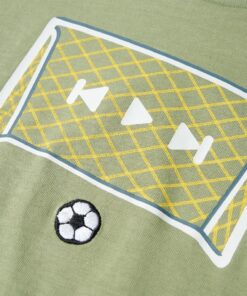 Dit kindershirt heeft korte mouwen, een ronde halslijn en een recht model. Op dit kindershirt staat een doel en een geborduurde voetbal afgebeeld. Het kindershirt met korte mouwen is gemaakt van 100% katoen, waardoor het zacht en comfortabel aanvoelt.