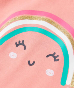 Dit kindershirt heeft korte mouwen, een ronde halslijn en een recht model. Op dit T-shirt staat een leuke lachende regenboog afgebeeld. Het kindershirt met korte mouwen is gemaakt van 95% katoen en 5% elastaan, waardoor hij comfortabel en ademend is.