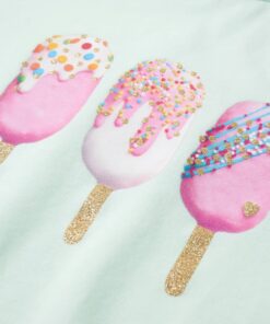 Dit kindershirt heeft korte mouwen, een ronde halslijn en een recht model. Op dit kindershirt staan ijsjes afgebeeld Het kindershirt met korte mouwen is gemaakt van 95% katoen en 5% elastaan, waardoor het zacht en comfortabel aanvoelt.
