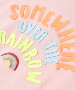 Dit kindershirt heeft korte mouwen, een ronde halslijn en een recht model. Op dit kindershirt staan een regenboog en de woorden ‘somewhere over the rainbow’ afgebeeld. Het kindershirt is gemaakt van katoen en elastaan, waardoor het zacht en comfortabel aanvoelt.