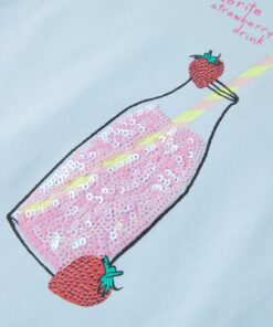 Dit kindershirt heeft korte mouwen, een ronde halslijn en een recht model. Op de voorkant van dit kindershirt staat een fles met een aardbeiendrankje afgebeeld. Het kindershirt is gemaakt van katoen en elastaan, waardoor het zacht en comfortabel aanvoelt.