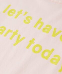 Dit kindershirt heeft korte mouwen, een ronde halslijn en een recht model. Op dit kindershirt staat de tekst ‘let’s have a party today’ afgebeeld. Het kindershirt met korte mouwen is gemaakt van 95% katoen en 5% elastaan, waardoor hij comfortabel en ademend is.