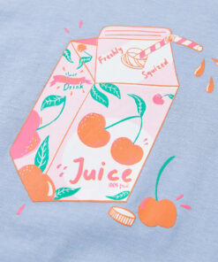Dit kindershirt heeft korte mouwen, een ronde halslijn en een recht model. Op dit kindershirt staat een pakje sap met een kersenprint afgebeeld. Het kindershirt met korte mouwen is gemaakt van 100% katoen, waardoor het zacht en comfortabel aanvoelt.