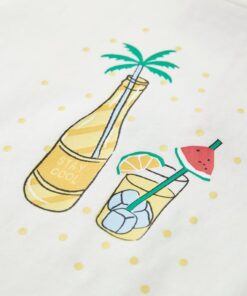 Dit kindershirt heeft korte mouwen, een ronde halslijn en een recht model. Op dit kindershirt staan op de voorkant drankjes afgebeeld. Het kindershirt is gemaakt van katoen en elastaan, waardoor het zacht en comfortabel aanvoelt.