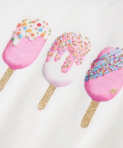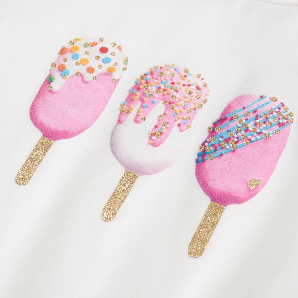 Dit kindershirt heeft korte mouwen, een ronde halslijn en een recht model. Op dit kindershirt staan ijsjes afgebeeld Het kindershirt met korte mouwen is gemaakt van 95% katoen en 5% elastaan, waardoor het zacht en comfortabel aanvoelt.