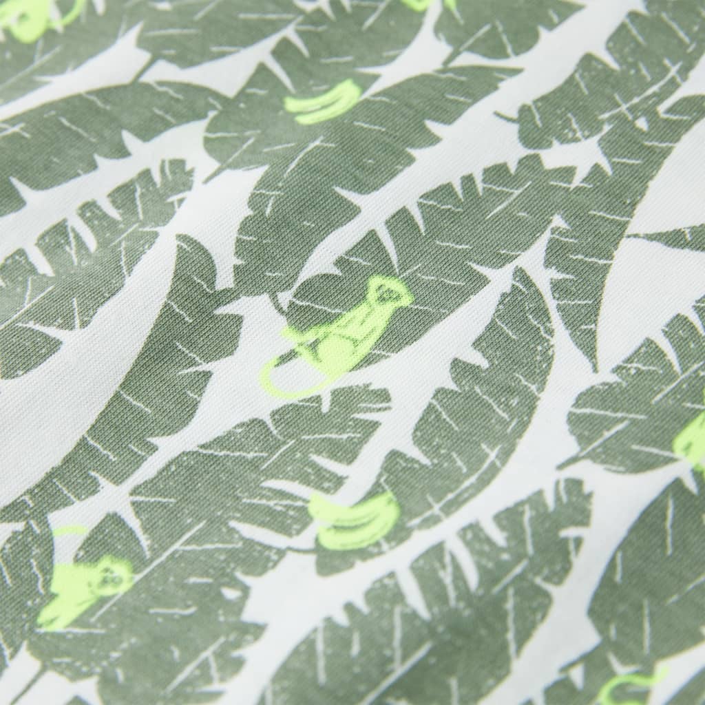 Dit kindershirt heeft korte mouwen, een ronde halslijn en een recht model. Op dit kindershirt staan allemaal bladeren en apen afgebeeld. Het kindershirt met korte mouwen is gemaakt van 100% katoen, waardoor het zacht en comfortabel aanvoelt.