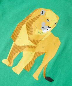 Dit kindershirt heeft korte mouwen, een ronde halslijn en een recht model. Op dit kindershirt staat een grote leeuw afgebeeld. Het kindershirt met korte mouwen is gemaakt van 100% katoen, waardoor het zacht en comfortabel aanvoelt.