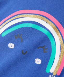 Dit kindershirt heeft korte mouwen, een ronde halslijn en een recht model. Op dit T-shirt staat een leuke lachende regenboog afgebeeld. Het kindershirt met korte mouwen is gemaakt van 95% katoen en 5% elastaan, waardoor hij comfortabel en ademend is.