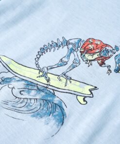 Dit kindershirt heeft korte mouwen, een ronde halslijn en een recht model. Op dit kindershirt staat een surfende dinosaurus afgebeeld. Het T-shirt is gemaakt van 100% katoen, waardoor het zacht en comfortabel aanvoelt.