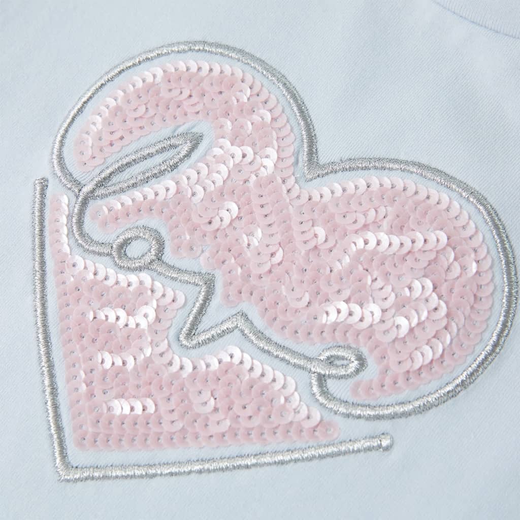 Dit kindershirt heeft korte mouwen, een ronde halslijn en een recht model. Op dit lichtblauwe kindershirt staat een leuk hartje van pailletten afgebeeld. Het kindershirt met korte mouwen is gemaakt van 95% katoen en 5% elastaan, waardoor het zacht en comfortabel aanvoelt.