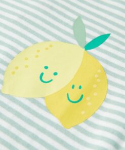 Dit kindershirt heeft ruches aan de mouwen, een ronde halslijn en een recht model. Op dit kindershirt staan schattige citroenen op de borst afgebeeld. Het kindershirt is gemaakt van katoen en elastaan, waardoor het zacht en comfortabel aanvoelt.