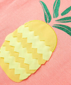 Het mouwloze kindershirt heeft een ronde halslijn en een recht model. Op dit kindershirt staat op de voorkant een ananas afgebeeld. Het kindershirt is gemaakt van katoen, polyester en elastaan, waardoor het zacht en comfortabel aanvoelt.