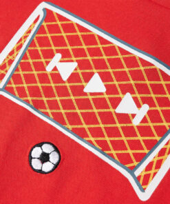 Dit kindershirt heeft korte mouwen, een ronde halslijn en een recht model. Op dit kindershirt staat een doel en een geborduurde voetbal afgebeeld. Het kindershirt met korte mouwen is gemaakt van 100% katoen, waardoor het zacht en comfortabel aanvoelt.