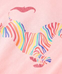 Dit kindershirt heeft korte mouwen, een ronde halslijn en een recht model. Op dit T-shirt staat een kleurrijke eenhoorn afgebeeld. Het kindershirt met korte mouwen is gemaakt van 95% katoen en 5% elastaan, waardoor hij comfortabel en ademend is.