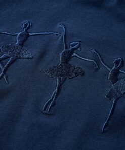 Dit kindershirt heeft lange mouwen, een halve col, overgestikte randen aan de halslijn,mouwen en zoom. Op dit marineblauwe kindershirt zijn schattige ballerinameisjes afgebeeld. Het t-shirt met lange mouwen is gemaakt van zacht materiaal met 95% katoen en 5% elastaan voor extra comfort en ademend vermogen.
