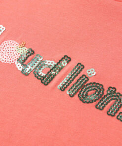 Dit kindershirt heeft kapmouwen, een ronde halslijn en een recht model. Op dit kindershirt staan letters van pailletten afgebeeld. Het kindershirt met kapmouwen is gemaakt van zacht materiaal met 95% katoen en 5% elastaan, waardoor het extra comfortabel en ademend is.