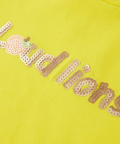 Dit kindershirt heeft kapmouwen, een ronde halslijn en een recht model. Op dit kindershirt staan letters van pailletten afgebeeld. Het kindershirt met kapmouwen is gemaakt van zacht materiaal met 95% katoen en 5% elastaan, waardoor het extra comfortabel en ademend is.