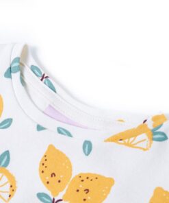 Dit kindershirt heeft korte mouwen, een ronde halslijn en een recht model. Op dit kindershirt staat op de voorkant een leuk patroon van citroenen en hij heeft een knoop in de zoom. Het T-shirt is gemaakt van 100% katoen, waardoor het zacht en comfortabel aanvoelt.