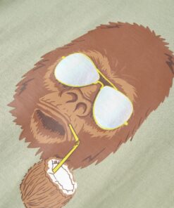 Dit kindershirt heeft korte mouwen, een ronde halslijn en een recht model. Op dit kindershirt staat op de voorkant een gorilla met een kokosnoot afgebeeld. Het T-shirt is gemaakt van 100% katoen, waardoor het zacht en comfortabel aanvoelt.
