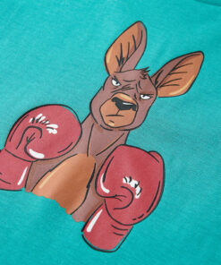 Dit kindershirt heeft korte mouwen, een geribbelde ronde halslijn en een recht model. Op dit kindershirt staat een kangoeroe met bokshandschoenen afgebeeld. Het kindershirt met korte mouwen is gemaakt van 100% katoen, waardoor het comfortabel en ademend is.