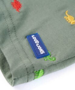 Dit kindershirt heeft korte mouwen, een ronde halslijn en een recht model. Op dit kindershirt staan rode, oranje, gele en groene dinosaurussen afgebeeld. Het T-shirt is gemaakt van 100% katoen, waardoor het zacht en comfortabel aanvoelt.