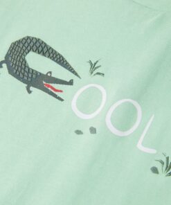 Dit kindershirt heeft korte mouwen, een geribbelde ronde halslijn en een recht model. Op dit kindershirt staat een krokodil met letters en gras afgebeeld. Het kindershirt met korte mouwen is gemaakt van 100% katoen, waardoor het comfortabel en ademend is.