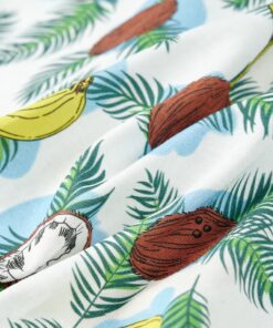 Dit kindershirt heeft korte mouwen, een ronde halslijn en een recht model. Op dit kindershirt staan kokosnoten, bananen en bladeren afgebeeld. Het T-shirt is gemaakt van 100% katoen, waardoor het zacht en comfortabel aanvoelt.