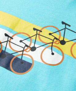 Dit kindershirt heeft korte mouwen, een geribbelde ronde halslijn en een recht model. Op dit kindershirt staan fietsen en kleurrijke brede strepen afgebeeld. Het kindershirt met korte mouwen is gemaakt van 100% katoen, waardoor het comfortabel en ademend is.