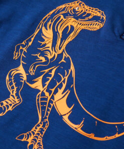 Dit kindershirt heeft korte mouwen, een geribbelde ronde halslijn en een recht model. Dit kindershirt heeft een afbeelding van een dinosaurus en een rits. Het kindershirt met korte mouwen is gemaakt van 100% katoen, waardoor het comfortabel en ademend is.