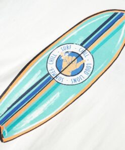 Dit kindershirt heeft korte mouwen, een ronde halslijn en een recht model. Op dit kindershirt staat op de voorkant een kleurrijk surfboard afgebeeld. Het T-shirt is gemaakt van 100% katoen, waardoor het zacht en comfortabel aanvoelt.