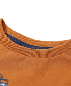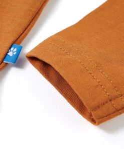 Dit kindershirt heeft lange mouwen, een ronde halslijn en een recht model. Op dit donkerokere T-shirt staat een grote gorilla met een muziekspeler afgebeeld. Het kindershirt met lange mouwen is gemaakt van 100% katoen en voelt zacht en comfortabel aan.
