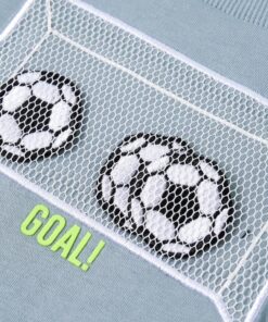 Dit kindershirt heeft lange mouwen, een ronde halslijn en een recht model. Op dit lichtblauwe T-shirt staat een voetbaldoel afgebeeld. Het kindershirt met lange mouwen is gemaakt van 100% katoen dat met een silicone- en enzymwassing is behandeld, zodat hij zacht en comfortabel aanvoelt.