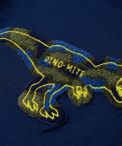 Dit kindershirt heeft lange mouwen, een ronde hals met een geribbelde rand en een recht model. Op dit kindershirt staat een dinosaurus afgebeeld. Het kindershirt met lange mouwen is gemaakt van 100% katoen, waardoor het comfortabel en ademend is.