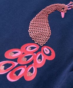 Dit kindershirt heeft lange mouwen, een ronde halslijn en een recht model. Op dit kindershirt staat een pauw afgebeeld. Het kindershirt met lange mouwen is gemaakt van zacht materiaal met 95% katoen en 5% elastaan voor extra comfort en ademend vermogen.