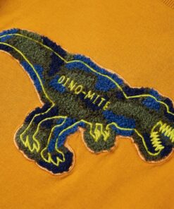 Dit kindershirt heeft lange mouwen, een ronde hals met een geribbelde rand en een recht model. Op dit kindershirt staat een dinosaurus afgebeeld. Het kindershirt met lange mouwen is gemaakt van 100% katoen, waardoor het comfortabel en ademend is.