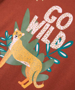Dit kindershirt heeft lange mouwen, een ronde halslijn en een recht model. Op dit cognackleurige kindershirt staat een leuk dier, planten en de woorden Go Wild afgebeeld. Het kindershirt met lange mouwen is gemaakt van zacht materiaal met 95% katoen en 5% elastaan voor extra comfort en ademend vermogen.
