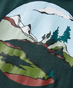 Dit t-shirt heeft lange mouwen, een ronde halslijn en een recht model. Op dit donkergroene kindershirt staan bergen en bomen afgebeeld. Het kindershirt met lange mouwen is gemaakt van 100% katoen en voelt zacht en comfortabel aan.