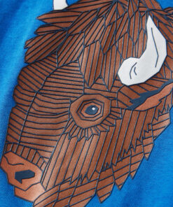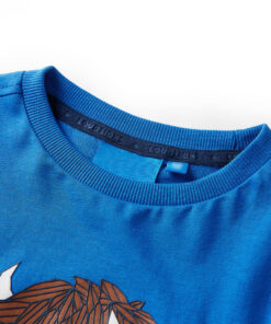 Dit kindershirt heeft lange mouwen, een ronde halslijn en een recht model. Dit kobaltblauwe t-shirt is heeft een dierenprint. Het kindershirt met lange mouwen is gemaakt van 100% katoen dat is behandeld met een siliconen- en enzymenwas voor een zachte en comfortabele touch.