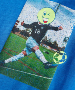 Dit kindershirt heeft lange mouwen, een ronde halslijn en een recht model. Op dit kobaltblauwe t-shirt is een voetbalspeler afgebeeld. Het kindershirt met lange mouwen is gemaakt van 100% katoen dat is behandeld met een siliconen- en enzymenwas voor een zacht en comfortabel gevoel.