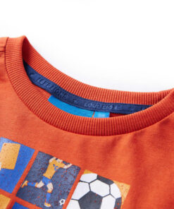 Dit t-shirt heeft lange mouwen, een ronde halslijn en een recht model. Op dit oranje T-shirt staat een voetbalwedstrijd afgebeeld. Het kindershirt met lange mouwen is gemaakt van zacht materiaal met 80% katoen en 20% viscose voor extra comfort en ademend vermogen.