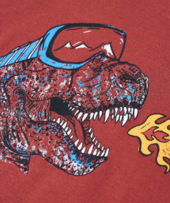 Dit kindershirt heeft lange mouwen, een ronde halslijn en een recht model. Op dit roodbruine kindershirt staat een grote dinosaurus afgebeeld. Het kindershirt met lange mouwen is gemaakt van 100% katoen en voelt zacht en comfortabel aan.